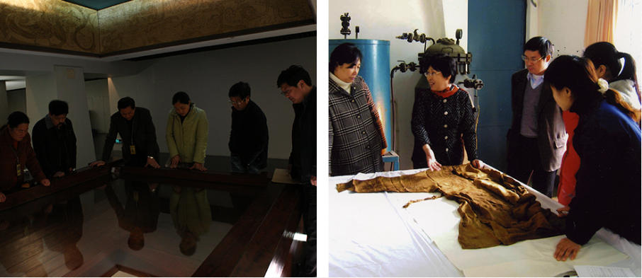 湖南省博物馆具有甲级可移动文物技术保护设计资质和一级可移动文物修复资质。立足馆藏,积极开展保护利用文物的技术攻关和实践,在金属文物去锈加固修复、陶瓷类文物保护修复、纸质文物修复等方面均取得了一定成果,在漆木器脱水研究、纺织品保护与清理、马王堆型湿尸保护等方面拥有全国领先的技术。同时,湖南省博物馆在博物馆学研究、文物研究与鉴赏、文物保护与修复、教育推广等领域有着深厚的学术传统与良好的学术氛围,全馆科研与学术呈现出多学科全面发展的良好势头。2017年以来先后承担和完成多项国家级、省部级课题,获得多项软著权和专利。同时积极探索博物馆与高校、科研院所以及市场主体的协同创新机制,促进博物馆科技成果的产出、转移和转化。其中,与中南大学联合组建的湖南省马王堆古尸和文物研究保护中心,在马王堆型湿尸保护等方面拥有全国领先的技术,开创了文物研究、保护的成功范例。2020年湖南省博物馆成功申报成为“科研事业单位”,成为全国省级博物馆中为数不多的案例。2021年,还获批立项建设“科技考古与文物保护利用湖南省重点实验室”,申报成为“湖南省首批文化和科技融合示范基地”。