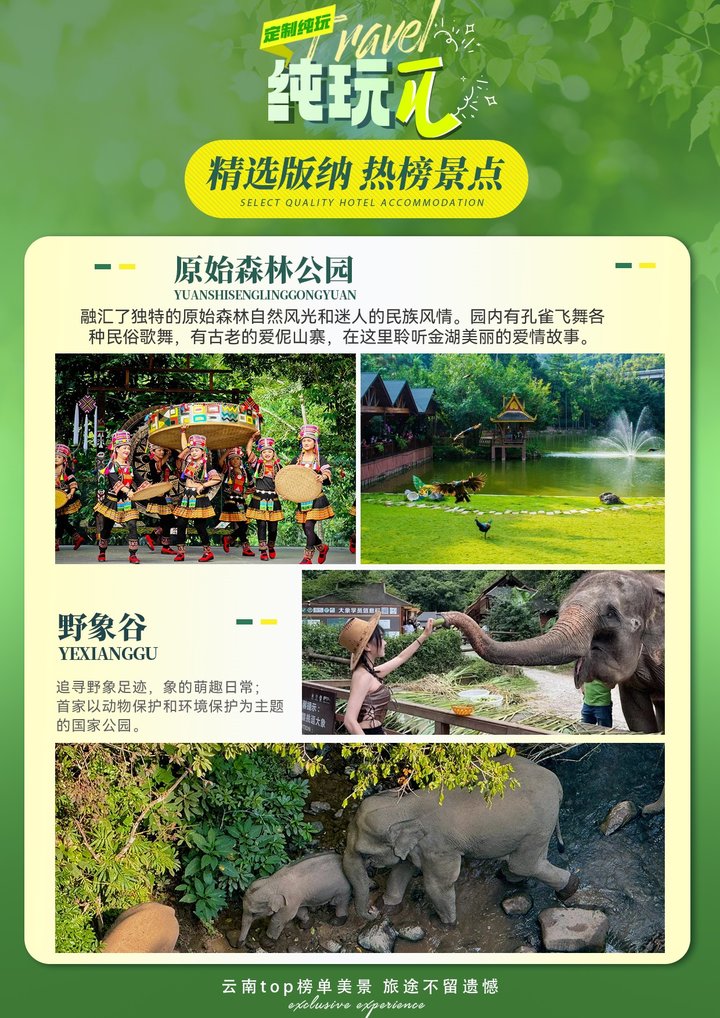 D3 热带花卉园——原始森林公园 酒店早餐,午餐过桥米线,晚餐自理 住宿精选三钻