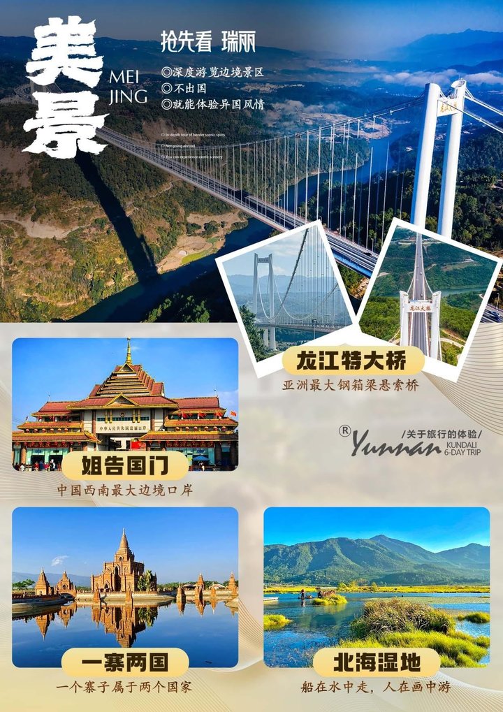第三天 一寨两国→中缅国门→龙江特大桥→北海湿地 住宿:腾冲 用餐:早
