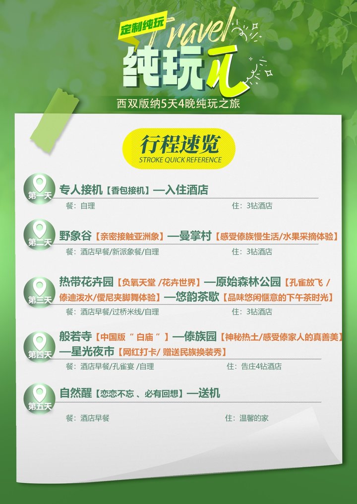 航班抵达西双版纳后,请您保持报名时预留电话的畅通,以便于接送人员能在第一时间内为您提供服务云南地属高原地区,气候易变、早晚温差较大、紫外线强度较大,请您做好替换衣物和防护准备。