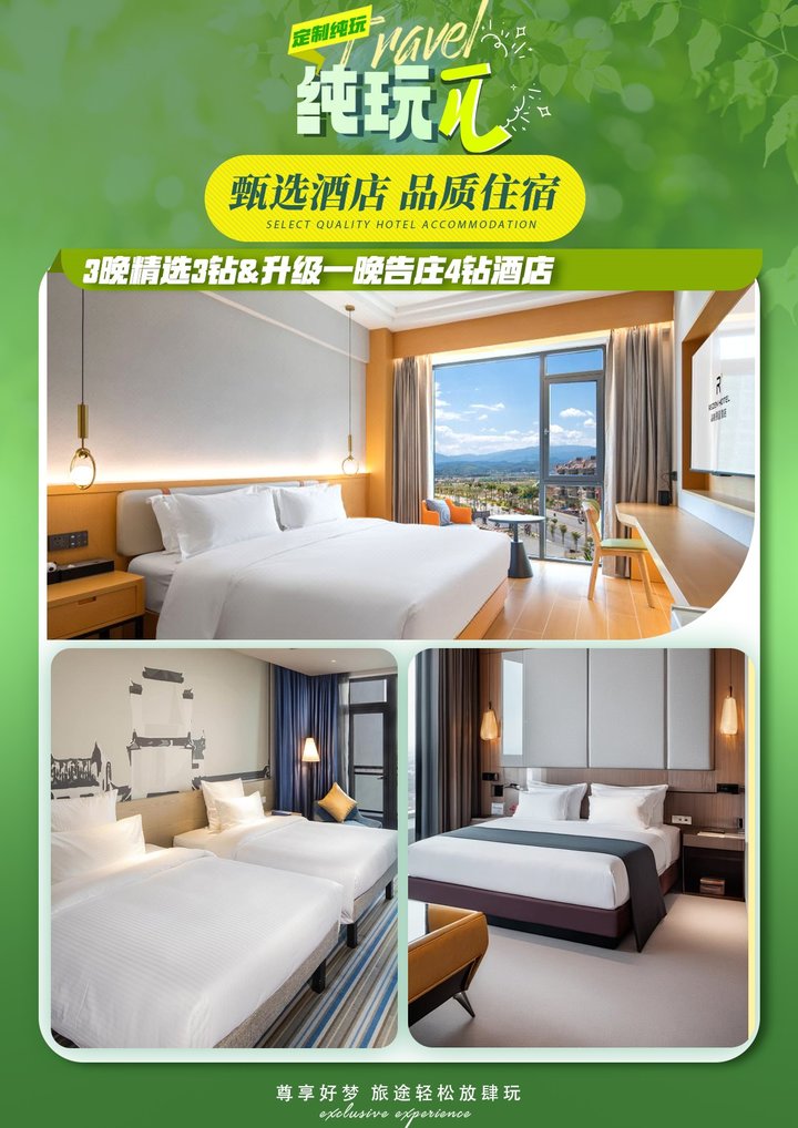 5、酒店住宿:四晚连住:一景夕住、纳里酒店、风情圣府、伟宏酒店、雅兰特酒店、戴斯精选温德姆或其他同级三钻酒店