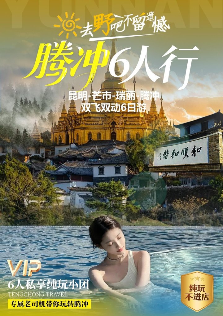 腾冲:程丰大酒店玉湾酒店、泊尔曼、华耀酒店、南亚酒店、德佳酒店或同级酒店