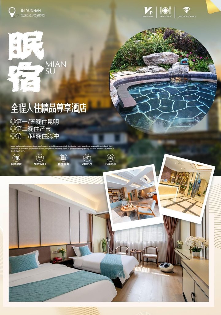 昆明:春辰大酒店/金源大酒店/丽豪大酒店/美仑/杋高酒店/兴港博悦芒市:财富大酒店/云墨大酒店/宜尚大酒店/丽枫/锦泰/或同级酒店